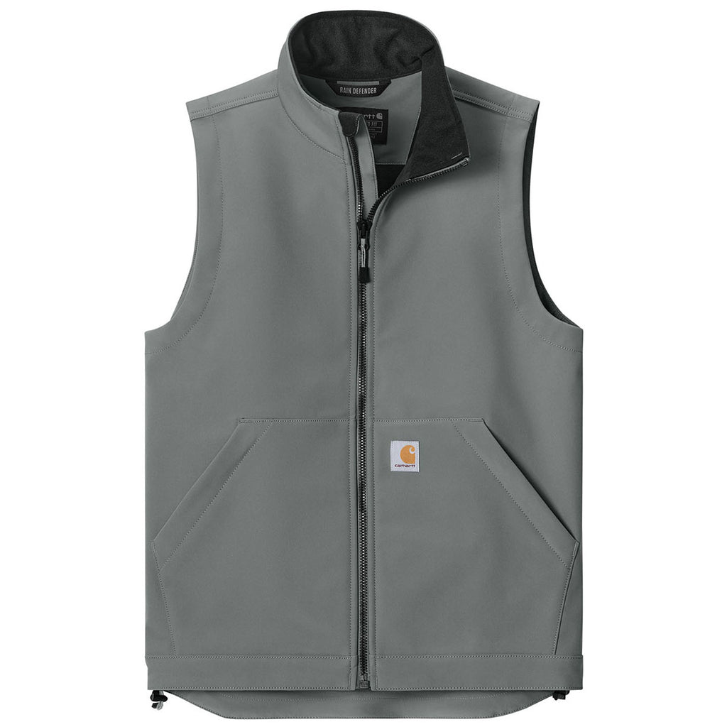 The Carhartt Men's Steel Rain Defender Soft Shell Vest offers a versatile layer for work or casual wear. Its weather-resistant fabric ensures comfort outdoors, while the sleeveless design allows freedom of movement. With corporate customization, it becomes a practical branded piece, ideal for layering during transitional seasons or as part of a team uniform.This product can only ship within the United States and Canada.