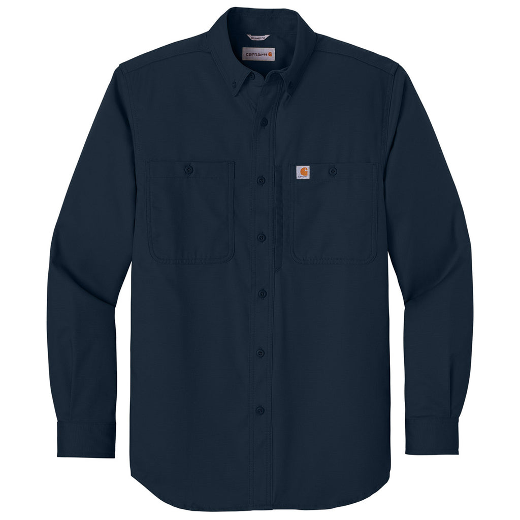 Add a corporate logo to the Carhartt Men's Navy Rugged Professional Series Long Sleeve Shirt to create a uniform anyone would feel privileged to wear. This clean and simple button-down work shirt is triple-stitched for durability, whether delivering packages, moving boxes, or just hanging out. Place an order today.