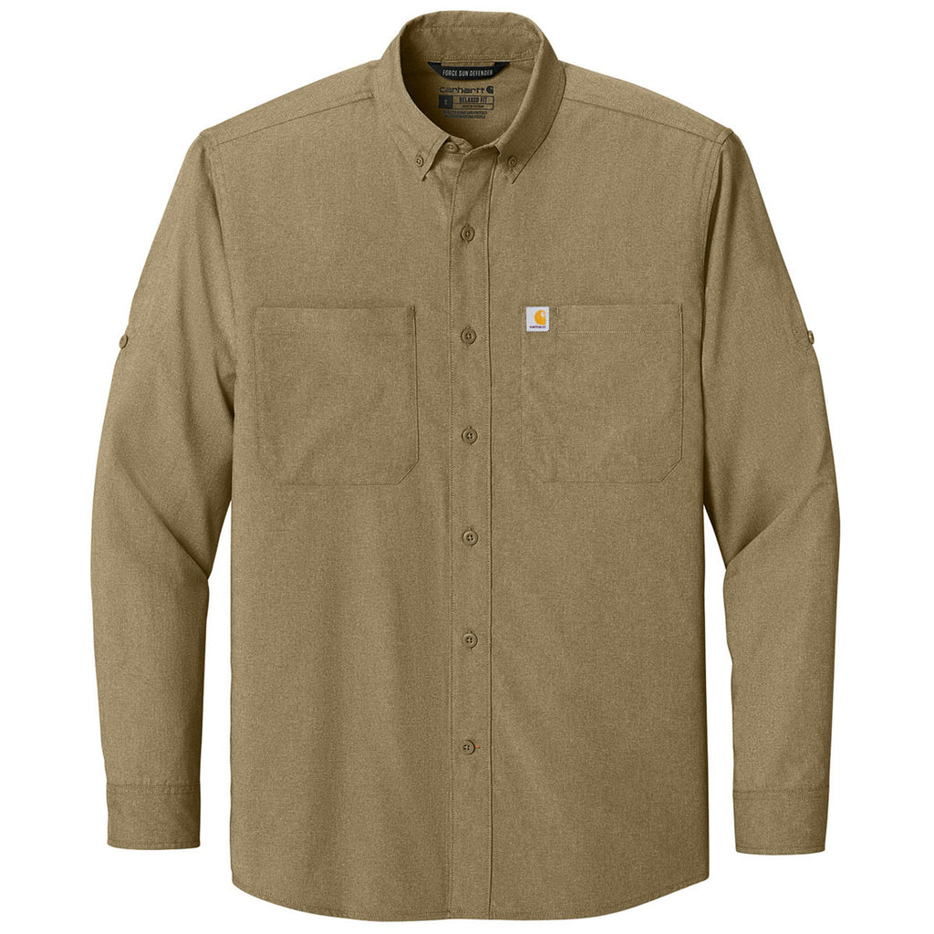Carhartt Men's Dark Khaki Force Sun Defender Long Sleeve Shirt