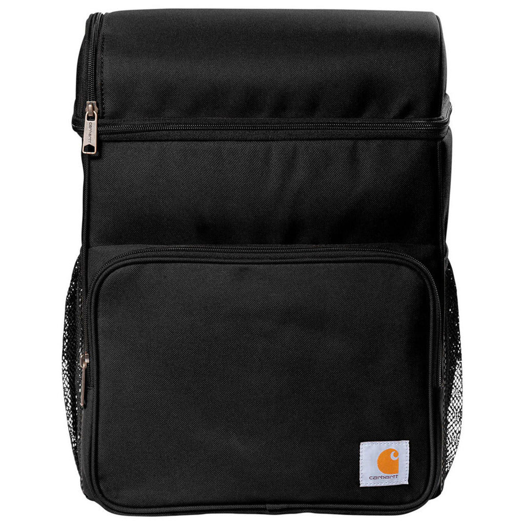 Add embroidery to the Carhartt Black Backpack 20-Can Cooler to give employee gifts that will be used for years to come. Whether carrying drinks to the worksite or heading out in the woods with friend to enjoy a campfire, this 20-Can cooler sis the perfect option. Made of 600D polyester with Rain Defender coating, this cooler is seam-sealed to prevent leaks from the main compartment and has an insulated top compartment to separate food as needed. A side mesh pocket is great for keys and phone and padded shoulder straps make carrying a breeze.