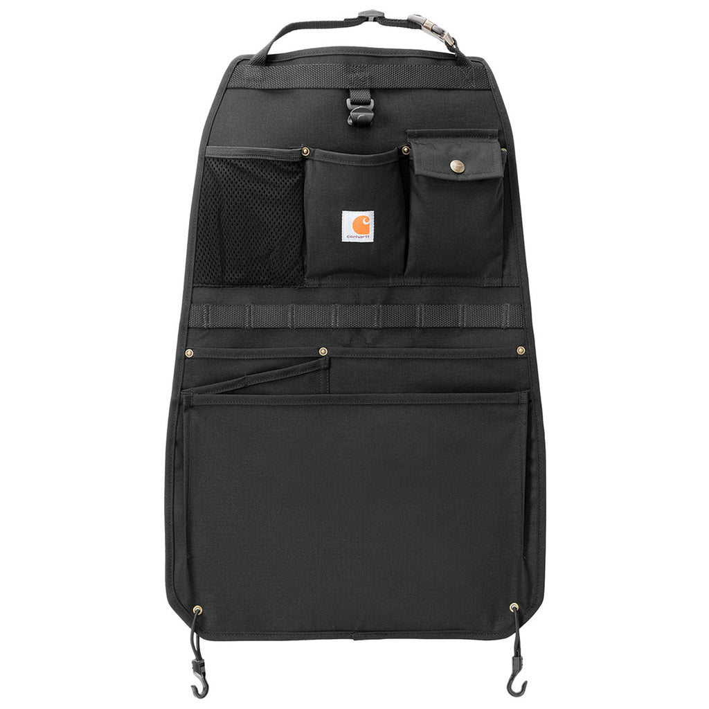 Carhartt Black Nylon Duck Organizer with embroidered logo is a fun way to stay organized. The rugged CORDURA fabric is water-repellent with 8 cargo pockets and a stretch mesh pocket. Hang the organizer anywhere with a hook and haul system. Great for organizing hair tools, supplies for events, and even tools. Place an order today.This product can only ship within the United States and Canada.
