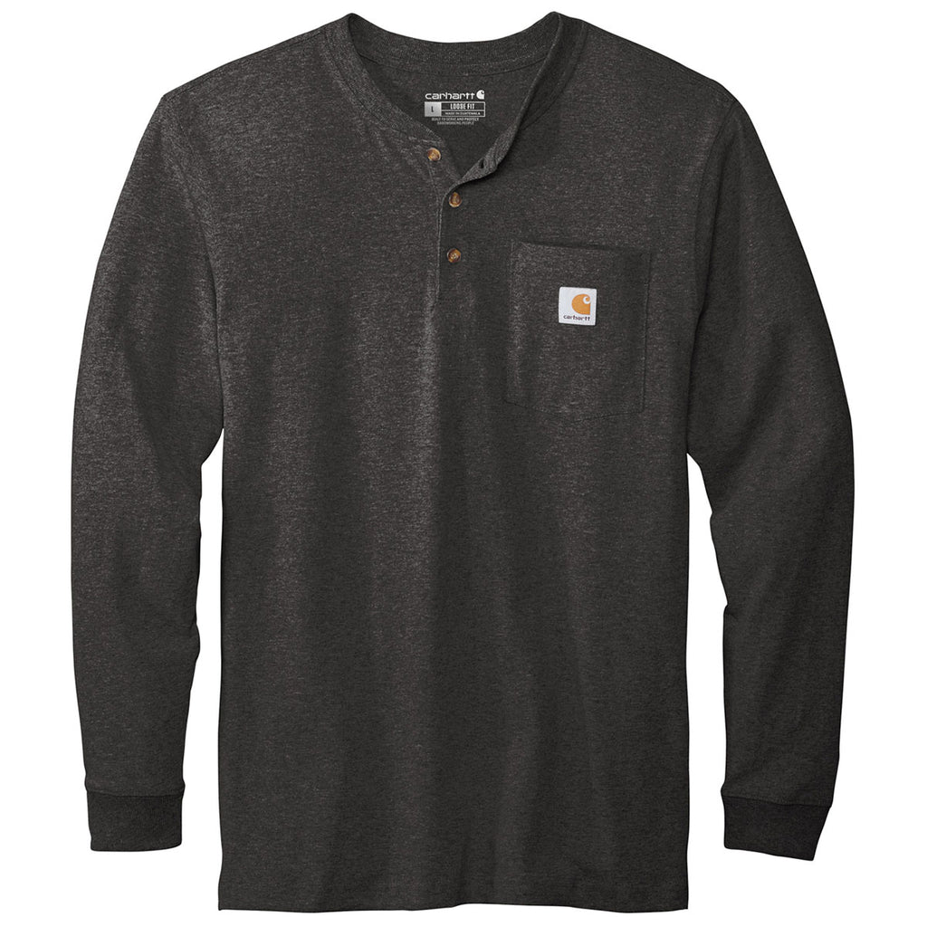 Choose a corporate logo for the Carhartt Men's Carbon Heather Long Sleeve Henley T-Shirt to create tough gear that is comfortable to wear. Great for those who work and play outdoors, Carhartt is known for being top of the line for farming, camping, construction, and much more. Place an order for this loose-fitting tee before time runs out.This product can only ship within the United States and Canada.