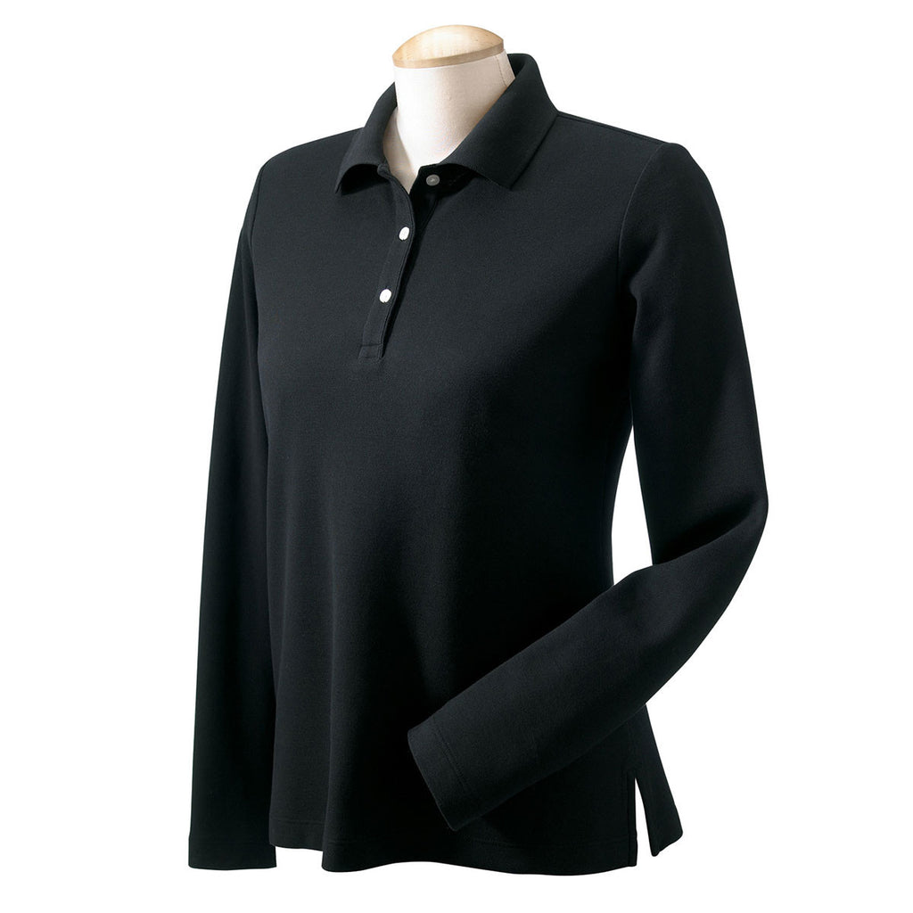 Devon & Jones Women's Black Pima Pique Long-Sleeve Polo
