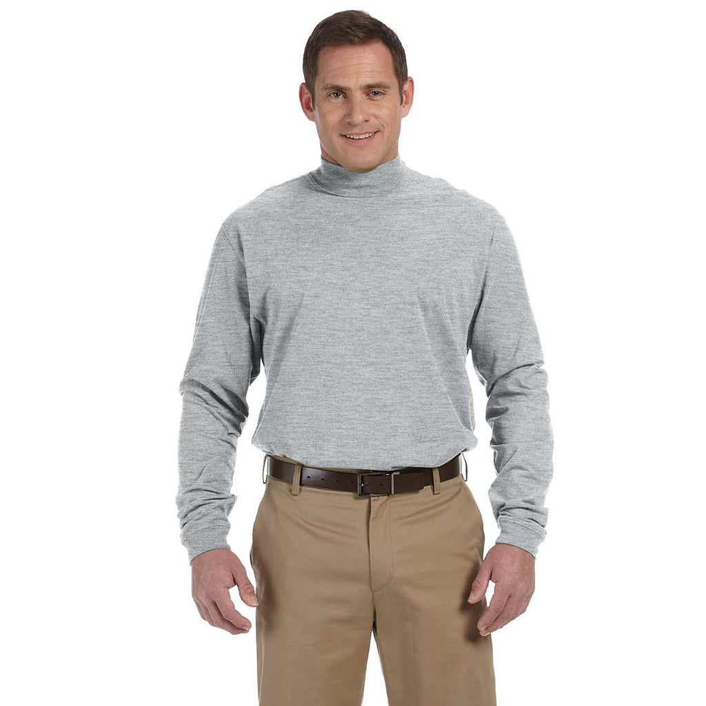 Devon & Jones Men's Grey Heather Sueded Cotton Jersey Mock Turtleneck