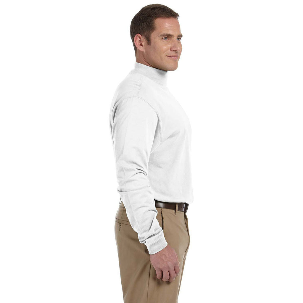 Devon & Jones Men's White Sueded Cotton Jersey Mock Turtleneck