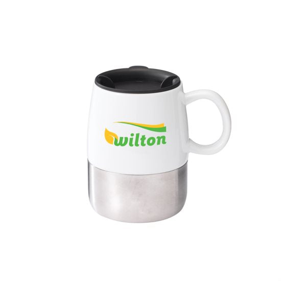 The Tasty by k & R is a high-quality mug made from ceramic. It's is dishwasher and microwave safe, and holds 14oz of your favorite beverage. It has easy push-on, seamless lid and cushioned base. It can be customized with your company's custom logo imprint for a corporate giveaway or business gift.