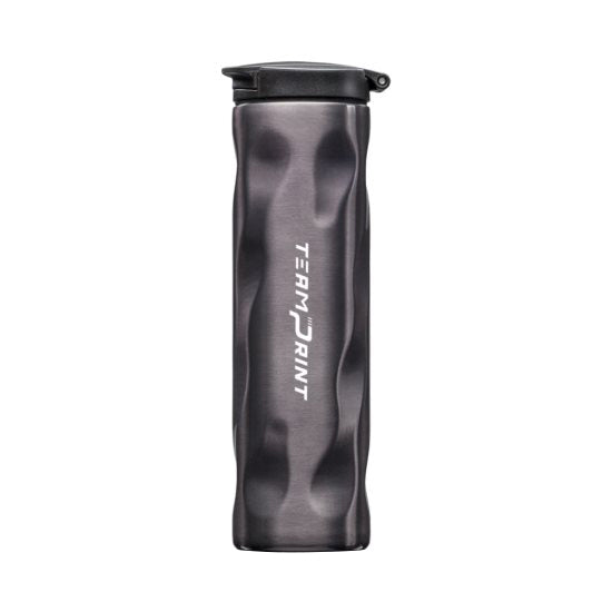 K & R's Chiseled 16oz tumbler features a sturdy stainless steel build and a screw on, spill proof flip lid with a contrasting silicone ring. Customize this tumbler by adding an imprint of your custom logo for promoting your company, fundraising or corporate gift giving.