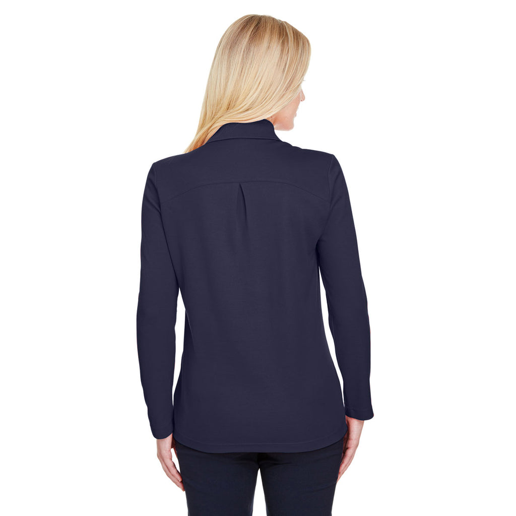 Devon & Jones Women's Navy CrownLux Performance Plaited Long Sleeve Polo