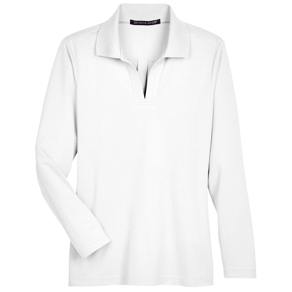 Devon & Jones Women's White CrownLux Performance Plaited Long Sleeve Polo