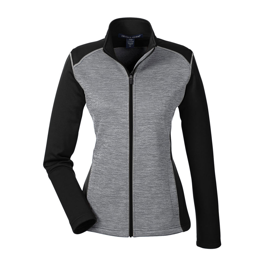 Devon & Jones Women's Black Heather/Dark Grey Heather Newbury Colorblock Melange Fleece Full-zip