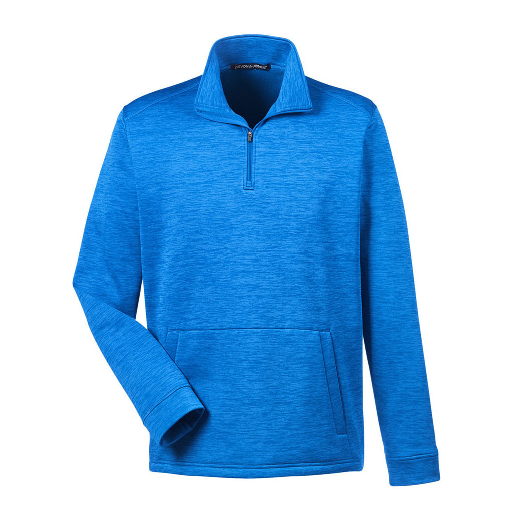 Devon & Jones Men's French Blue Heather Newbury Melange Fleece Quarter-zip