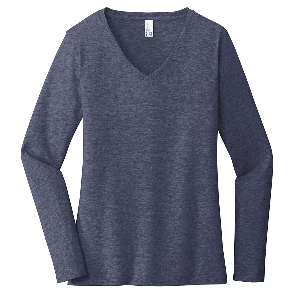 District Women's Heathered Navy Very Important Tee Long Sleeve V-Neck