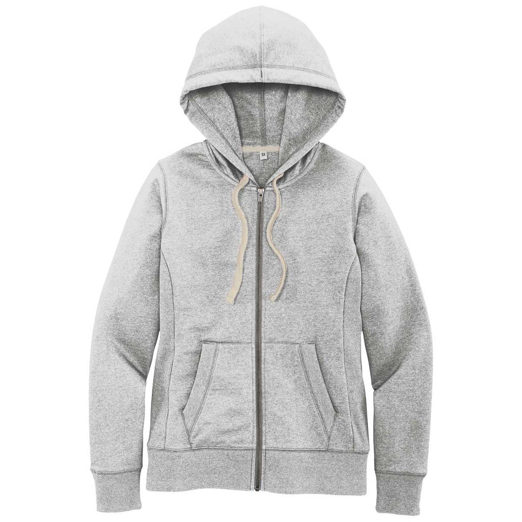 Add embroidery to the District Women's Light Heather Grey Re-Fleece Full-Zip Hoodie for a personalized look on a highly comfortable, affordable full-zip hoodie. Made of a blend of recycled cotton and recycled polyester, this hoodie wraps you in warmth at a price point that means it could easily be a custom gift for everyone you know. Add a company logo to give these as employee gifts or use as uniforms for those who need a casual look that is also warm. Rib knit side panels and a pocket opening at the hem add those small details that matter.Corresponding Men's Style: District Men's Light Heather Grey Re-Fleece Full-Zip Hoodie