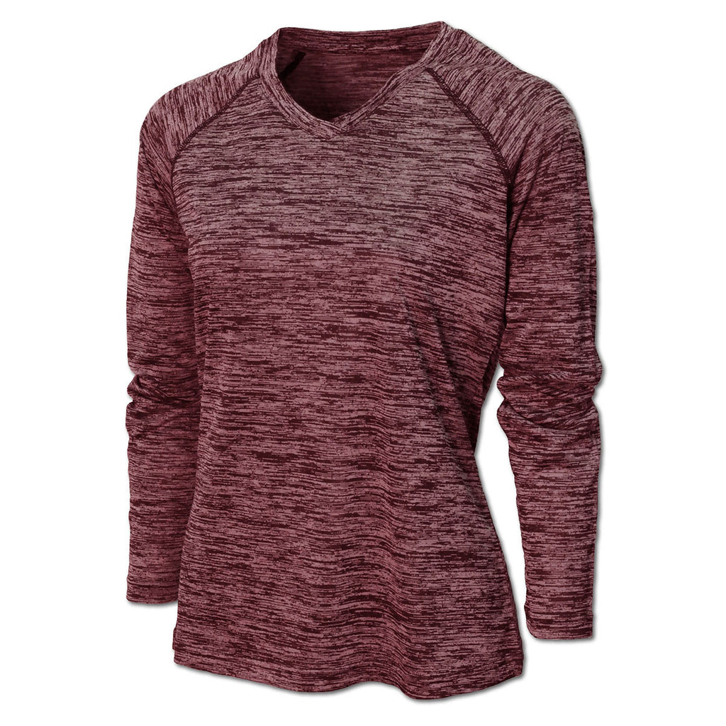 BAW Women's Maroon Vintage Heather Dry-Tek Long Sleeve Shirt