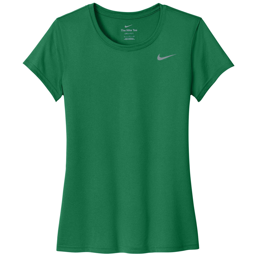 Nike Women's Gorge Green Team rLegend Tee with a custom logo is a must have for those who are active. This slightly fitted tee with Dri-FIT technology and made with sustainable recycled material can serve as a uniform, warm-up wear, or just an everyday favorite. Order yours today before time runs out.