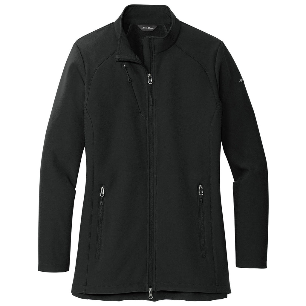 The Eddie Bauer Women's Deep Black Stretch Soft Shell Jacket is a great all-weather jacket. Keep warm with soft fleece lining on a chilling day. The polyester/spandex material blend provides ease of movement for the active day. Create a custom jacket by adding a logo on the chest and broadly display any brand.