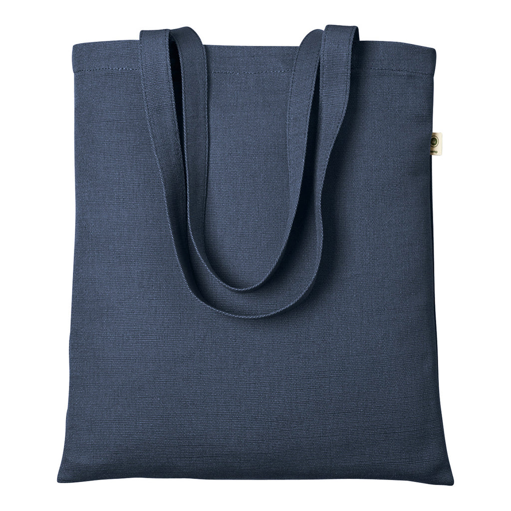 Long self-fabric straps make the Econscious Navy 6.8 oz Hemp Simplicity Tote bag a must have accessory for grocery store trips. With your new tote bag balanced against your body, you create more movement flexibility to get from a department store entrance to the department of your choice. Rugged construction of the tote bag takes the punishment handed out at bustling grocery stores. Logoed tote bags make affordable gifts for rewarding the loyal patrons of your business.