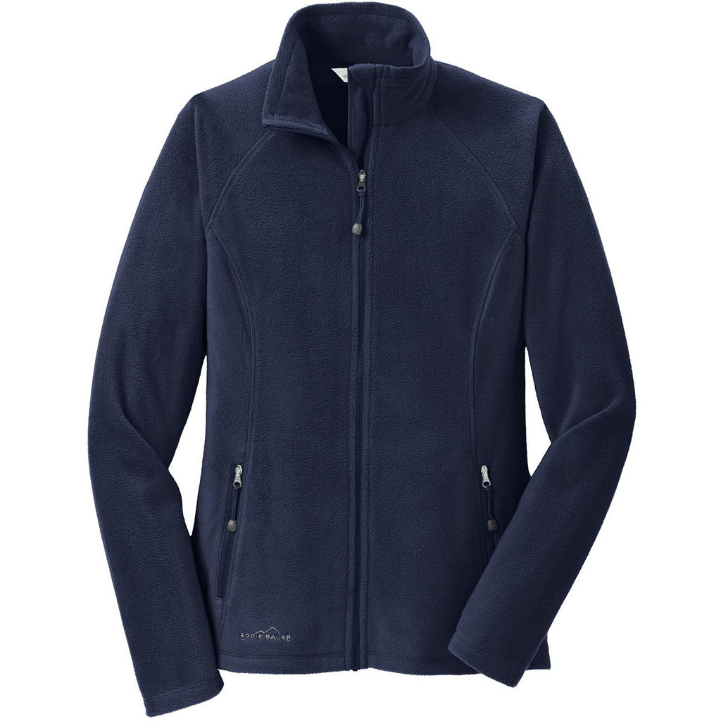 When is a microfleece more than a microfleece? When it rises above expectations. Sure, you'd expect that the Eddie Bauer Women's Navy Full-Zip Microfleece Jacket would be cozy enough for a snug fit. But did you expect princess seams and an open hem, offering breathability as well as comfort? And you might expect function. But reverse coil zippers, front zippered pockets, and a 100% polyester fabric ensure not only that your valuables are protected, but that you are protected from the elements as well. All in all, this is the perfect microfleece for any number of situations in which you need to shield yourself from the cold, the rain, the'well, just about anything mother nature wants to throw at you. Add your own corporate logo to this microfleece and you'll have a high-quality branded item all your own.