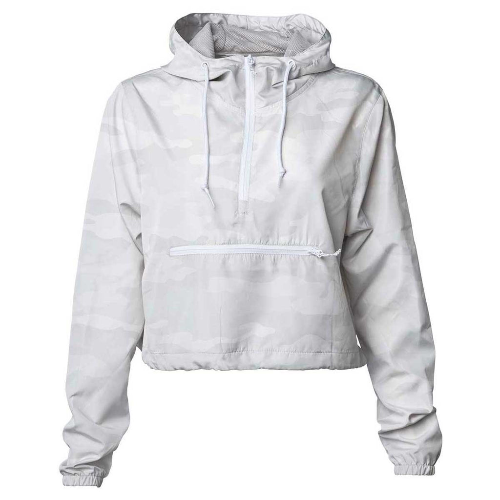 Independent Trading Co. Women's White Camo Lightweight Pullover Crop Windbreaker