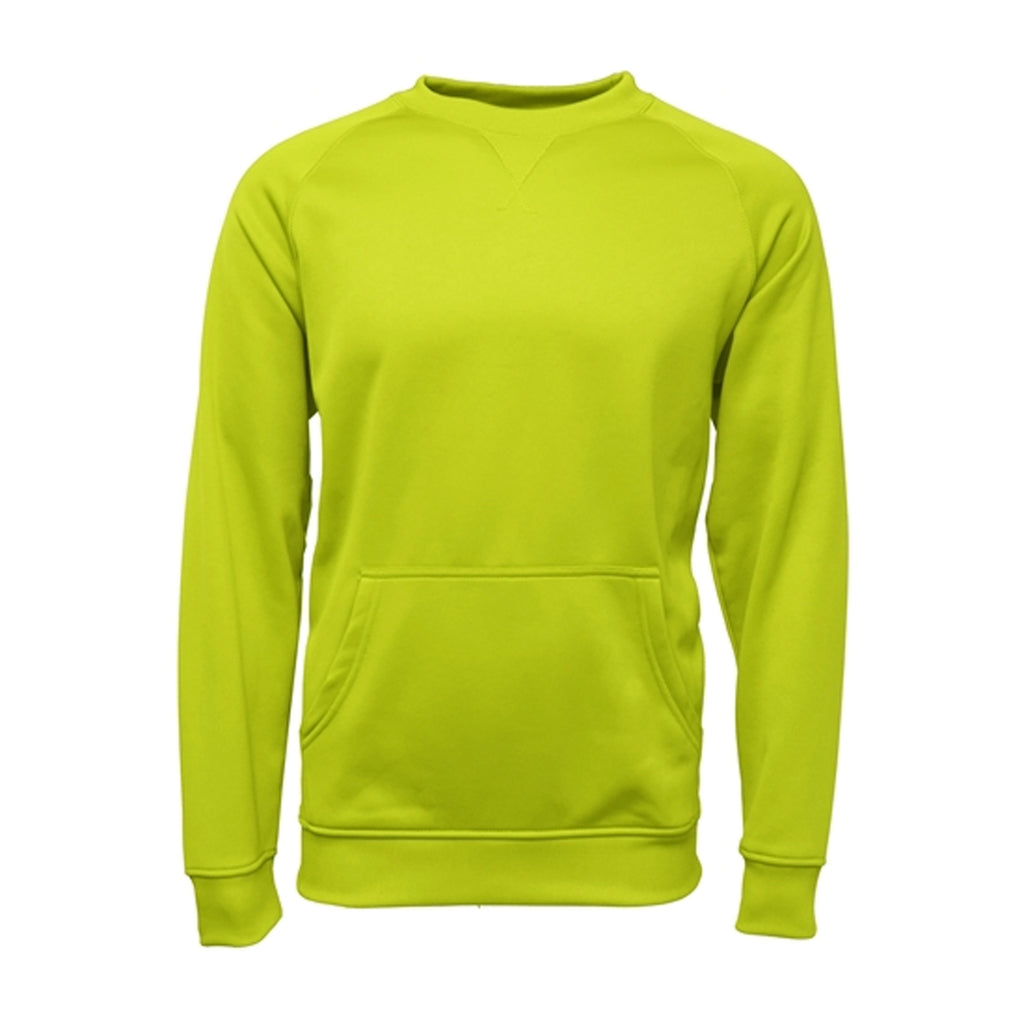 When you want a traditional sweatshirt that is appropriate for both men and women, the BAW Neon Yellow Crewneck Fleece Sweatshirt is your answer. Place your company's logo across the front and know that it will be noticed right away. This raglan sleeve style is polyester with stitching around the crew neck, banded cuffs and banded bottom hem. There is also stitching around the front pouch pocket. It is available in many colors and sizes range from S to 4X. Top quality can be seen from top to bottom.