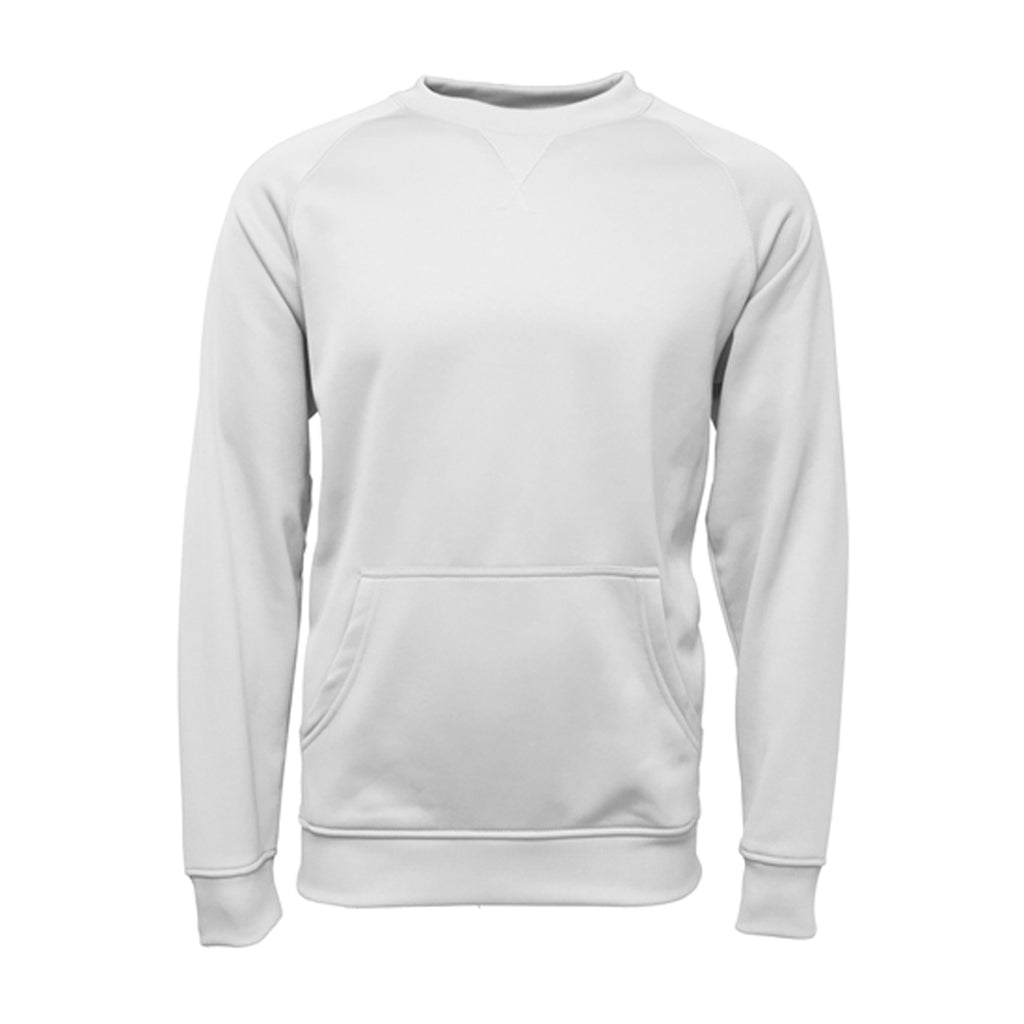 When you want a traditional sweatshirt that is appropriate for both men and women, the BAW White Crewneck Fleece Sweatshirt is your answer. Place your company's logo across the front and know that it will be noticed right away. This raglan sleeve style is polyester with stitching around the crew neck, banded cuffs and banded bottom hem. There is also stitching around the front pouch pocket. It is available in many colors and sizes range from S to 4X. Top quality can be seen from top to bottom.Highlights