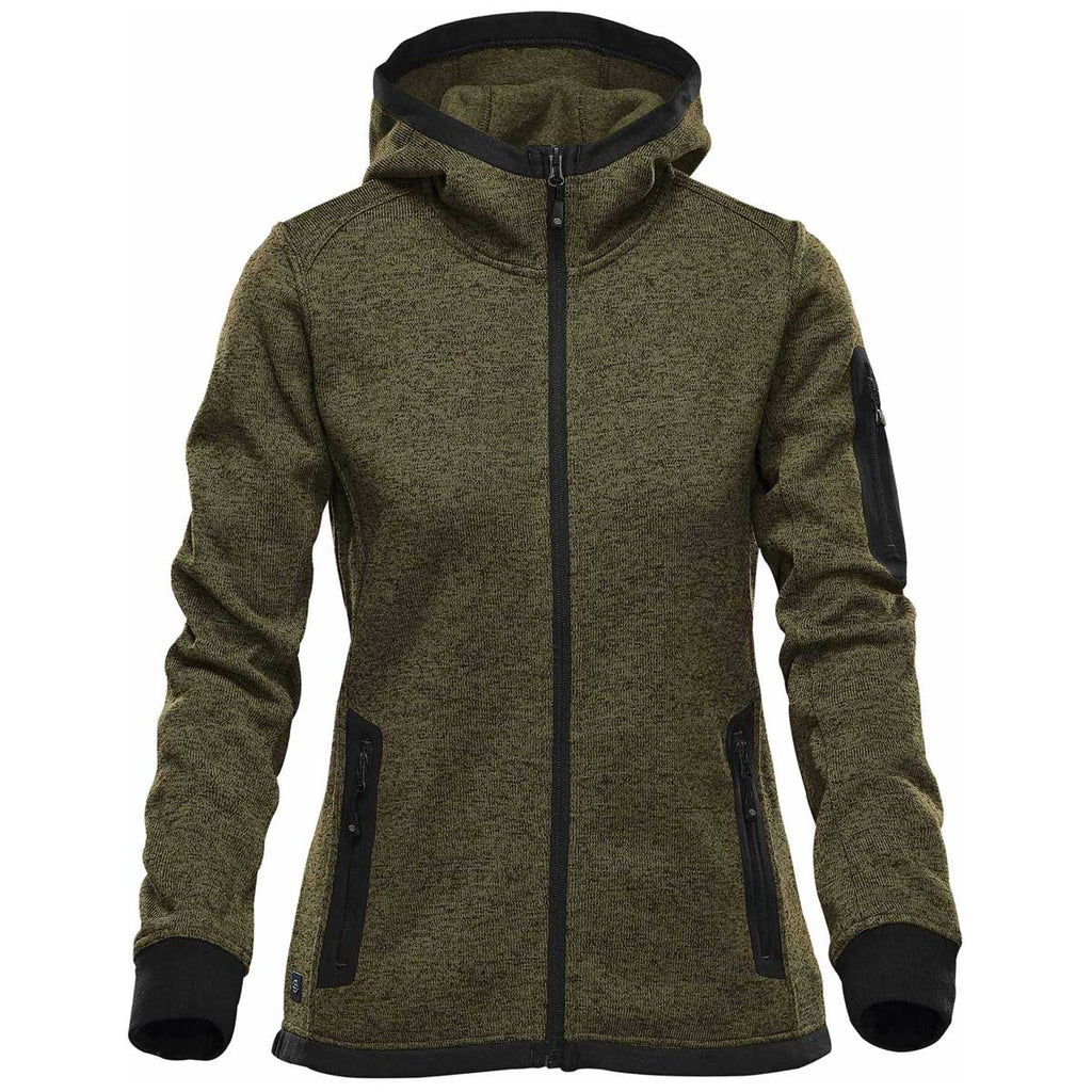 A custom hoody is a welcome addition to most clothing collections and the Stormtech Women's Sage Juneau Knit Hoody is one of the best around. Be casual in this seriously comfortable hoody by Stormtech. Enjoy the great outdoors on an outdoor adventure or head to the lake with your family in the ultra-soft, sweater knit fleece hoody with a scuba hood and low profile. Store small essentials in the zippered hand-warmer pockets or keep your cold hands toasty. The perfect layer for cold days, this hoody can be embroidered with the design you choose and given as a high-end gift to those you care about.Corresponding Men's Style: Stormtech Men's Sage Juneau Knit Hoody
