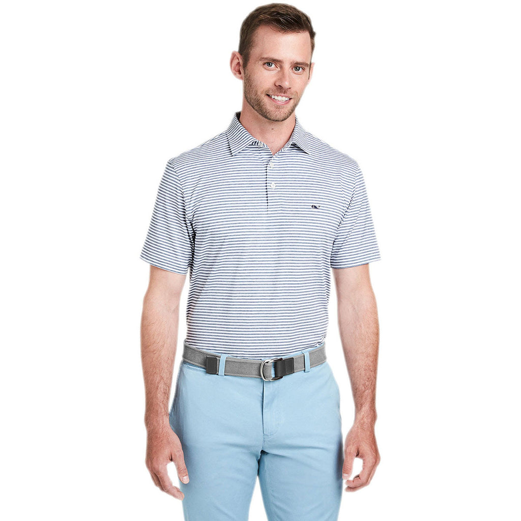 Vineyard Vines Men's Hammerhead Heathered Winstead Sankaty Polo with your custom-designed embroidery will get you noticed. The relaxed, classic-fitting polo is quick-drying, moisture-wicking, and has sun protection for all day wear. The soft heathered colors add flair to this polo with built-in stretch for comfort and movement making it perfect for golf, tennis, or just hanging out. Order today.