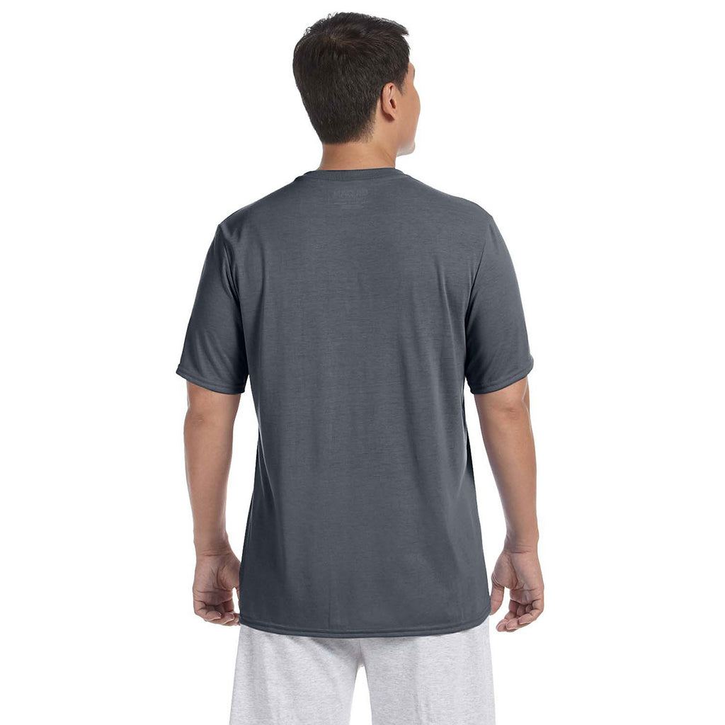 Take athletic performance to the next level by ordering the screen printed Gildan Men's Charcoal Performance T-Shirt for every employee on your high achieving team. Even the employees that prefer to root for the corporate softball team deserve to wear the lightweight, multi-purpose short sleeve shirts. Snag resistant fabric prevents the t-shirt from scrunching up whenever a player slides into second base. Designed with 100% polyester jersey knit, the stylish short sleeve shirt will get the other team talking about your incredible taste in fashion. Print a custom logo to take advantage of all the attention.Highlights