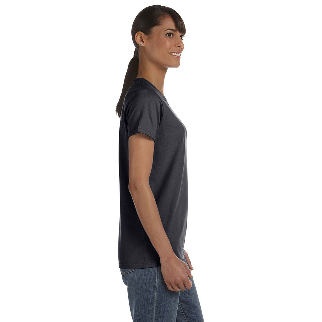 Make a lasting impression on the women that attend the next recruiting event by ordering the custom printed Gildan Women's Charcoal 5.3 oz. T-Shirt. Cap sleeves designed for comfort make the short sleeve shirt ideal for wearing at corporate softball tournaments. Double needle stitching throughout the t-shirt resists rips and tears to deliver superior fashion performance during outdoor recreational activities. Screen print your company logo on the large area to separate your brand from the competition. Logoed corporate apparel represents powerful marketing tools that do not put much of a dent in the annual budget.Corresponding Men's Style: Gildan Men's Charcoal 5.3 oz. T-Shirt