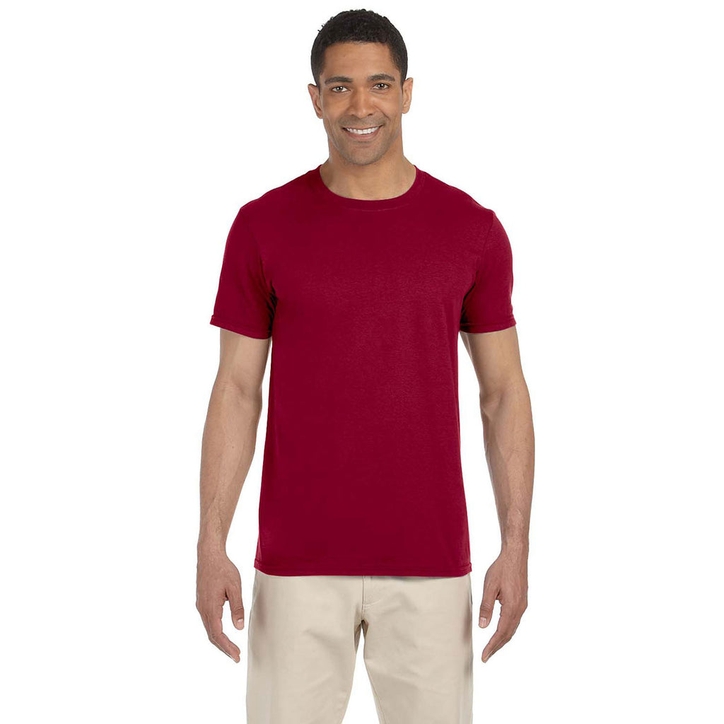 Generate a little employee swag by ordering the screen printed Gildan Men's Cardinal Red Softstyle 4.5 oz. T-Shirt. Double needle stitching at the sleeves and bottom hem resist the types of rips and tears that eventually unravel inferior designed company shirts. Enjoy the super soft comfort of 100% preshrunk cotton underneath a dress shirt or as the lone layer for outdoor corporate events. Print a custom logo on the t-shirt to boost the image of your company at industry trade shows. The taped neck and shoulder combined the fashion elements of style and long lasting durability.Highlights