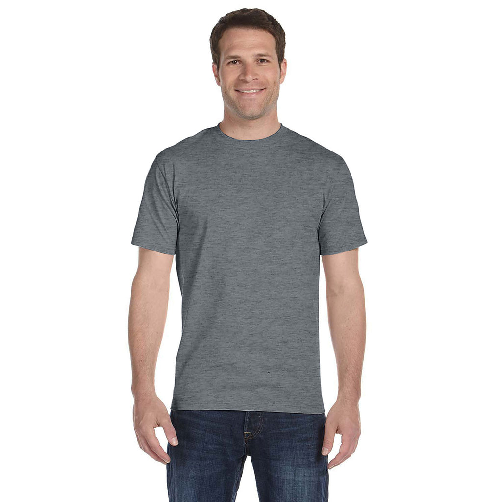 Attract the most accomplished professionals at the next recruiting event by giving away the custom logoed Gildan Unisex Graphite Heather 5.5 oz. 50/50 T-Shirt. Designed with a mix of smooth cotton and tear resistant polyester, the fashion versatile shirts work as well under a dress shirt, as the shirts work as the only layer during company golf events. The seamless collar presents a refined appearance worthy of the most accomplished professional. Add your company logo on the screen printed area to set the marketing standard in your industry. Proprietary DryBlend moisture wicking technology keeps the body comfortably dry.Highlights