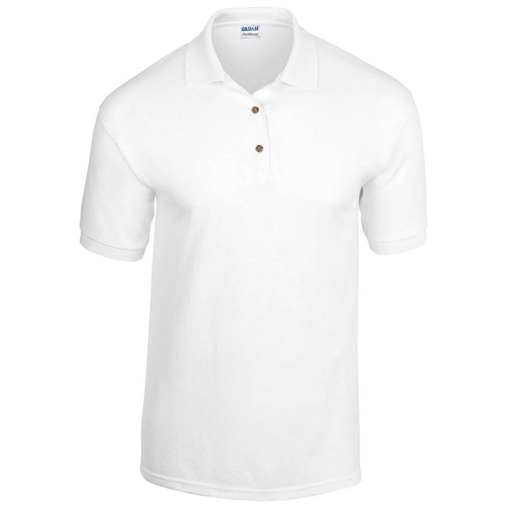 Gildan Men's White 6 oz. 50/50 Jersey Polo will show off your custom logo with pride. The lightweight cotton and polyester blend polo is great for the office or when hitting the links. The moisture-wicking properties keep you dry whether presenting for a meeting or playing the best round of your life. Place an order today.Highlights