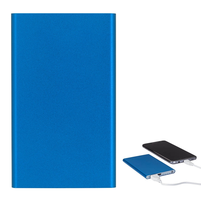An aluminum finish gives portable Logomark Blue Epsilon Mobile Power Bank a sleek and cool appearance. Stay powered up while on-the-go with this 4000mah bank that is perfectly sized to fit in a pocket or a purse. When custom printed with logo your promotional appeal will surely be noticed.