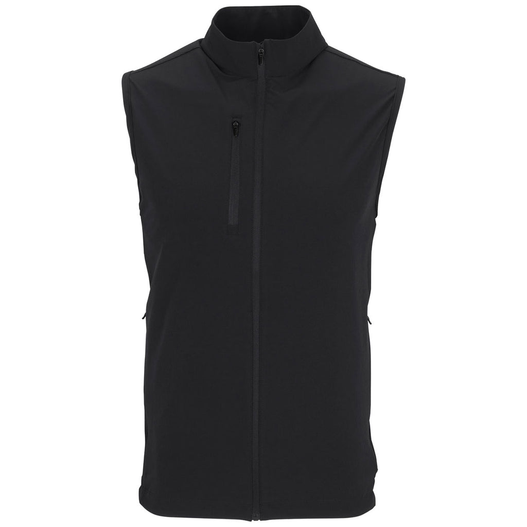 Add embroidery to the Greg Norman Men's Black Windbreaker Full-Zip Vest for a unique look that will benefit any logoed apparel line. This streamlined vest is the perfect solution to wind and rain when it is warm outside. This full-zip vest is made of a polyester rich spandex blend so it will not restrict movement whether you are playing golf or wearing it as part of employee apparel. The water repellant finish has a full front zip with inner storm flap and chin guard with adjustable even hem bottom. A right chest pocket is great for a score card and other small items.