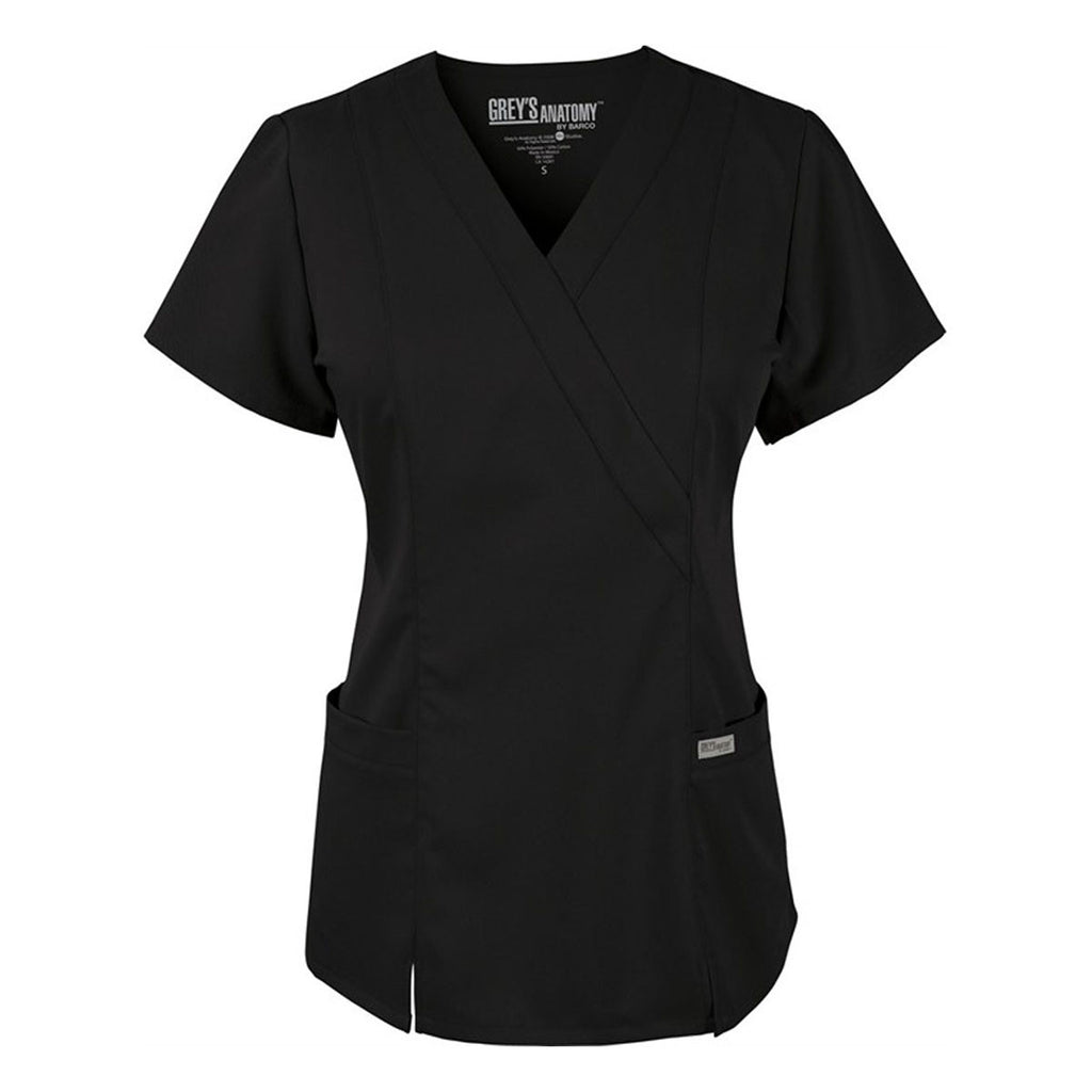 Grey's Anatomy Women's Black Princess Mock Wrap Top