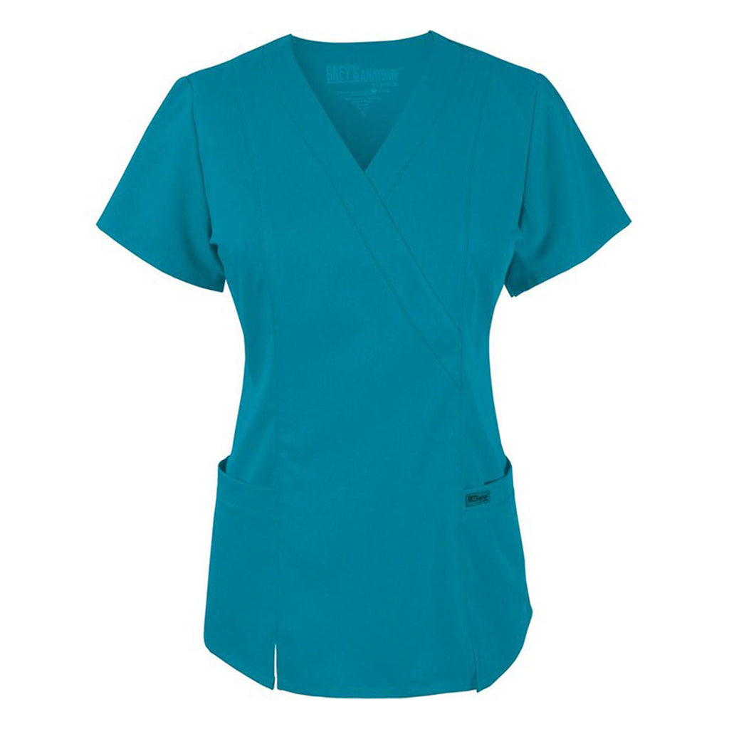 Grey's Anatomy Women's Teal Princess Mock Wrap Top