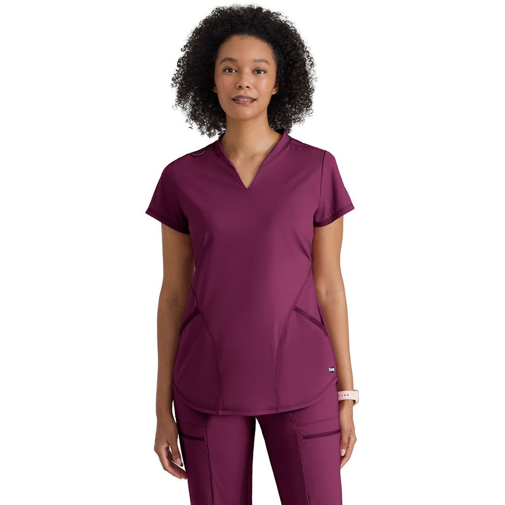 Look amazing in a custom Grey's Anatomy Women's Wine Two Pocket V-Neck Define Top that blends style with functionality. The V-notch neckline with cap sleeves is comfortable and durable for all-day wear. With built-in stretch, antimicrobial, and anti-odor protection, this top will stand up to a hard day at work or play.Highlights