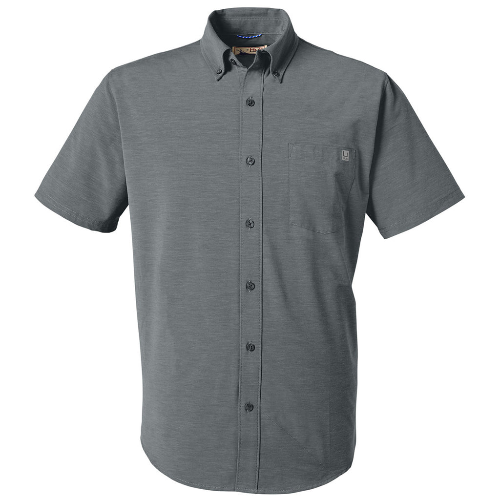 Add a corporate logo to the HUK Men's Volcanic Ash Kona Solid Short Sleeve Shirt for the perfect workwear for many professions. This tough shirt has 4-way stretch and a UPF of 30, with an interior eyewear wipe for convenience. Create your own uniforms for mechanics, salespeople, or even servers. Create something today.