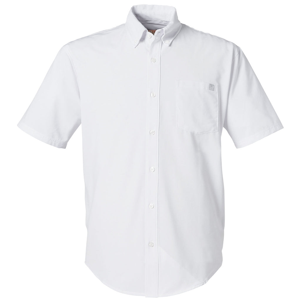 Add a corporate logo to the HUK Men's White Kona Solid Short Sleeve Shirt for the perfect workwear for many professions. This tough shirt has 4-way stretch and a UPF of 30, with an interior eyewear wipe for convenience. Create your own uniforms for mechanics, salespeople, or even servers. Create something today.