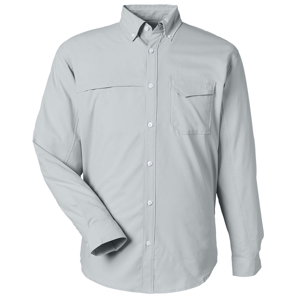 Design a corporate logo for the HUK Men's Harbor Mist Tide Point Long Sleeve Shirt for a professional look that can be worn alone or with a jacket to create an overall style. The button-up style creates a perfect uniform or all around shirt that can go from the office to a night out with friends with ease.Corresponding Women's Style: HUK Women's Harbor Mist Tide Point Long Sleeve Shirt