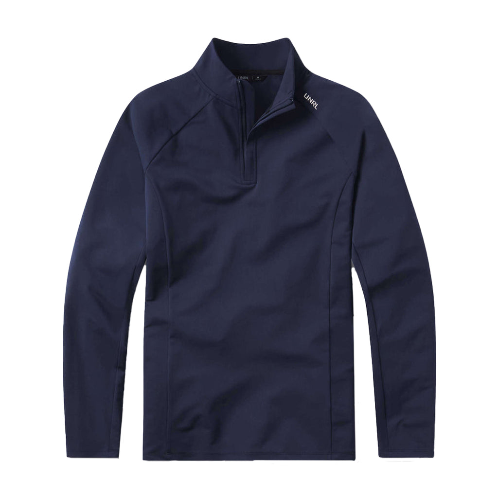 The UNRL Men's Navy Highlands Quarter Zips provides light weight SPF protection in a novel performance fabric. A refined layering piece that easily transitions from the office to the golf course. Contoured at the shoulders and throughout the body, this quarter zip allows full range of motion at the tee box. The only thing missing is a custom logo to outfit your entire team.