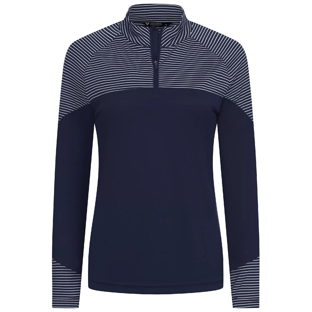 The Levelwear Women's Navy Classic Stripes Pullover combines refined design with easy comfort, perfect for custom apparel programs or corporate wear. Subtle striping and a soft-touch finish make it both flattering and versatile. Ideal for layering, it transitions seamlessly from work meetings to weekend outings with warmth, structure, and standout simplicity.This product cannot ship outside of the United States.