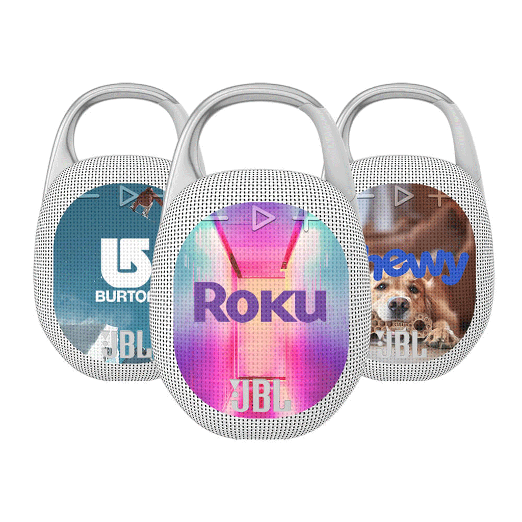 - Optional ColorMAX decoration available on white model only. Imprint on speaker grill (2.5"W x 3"H + 1/8" bleed). Please inquire for pricing.