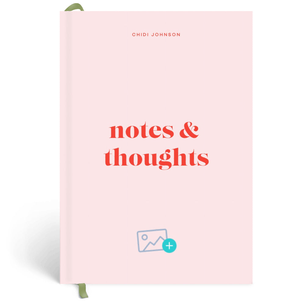 - Decoration: In addition to adding your logo, you may customize the font, text, and color of the "notes & thoughts" imprint as well as name personalization. Text and logo placement can be customized.