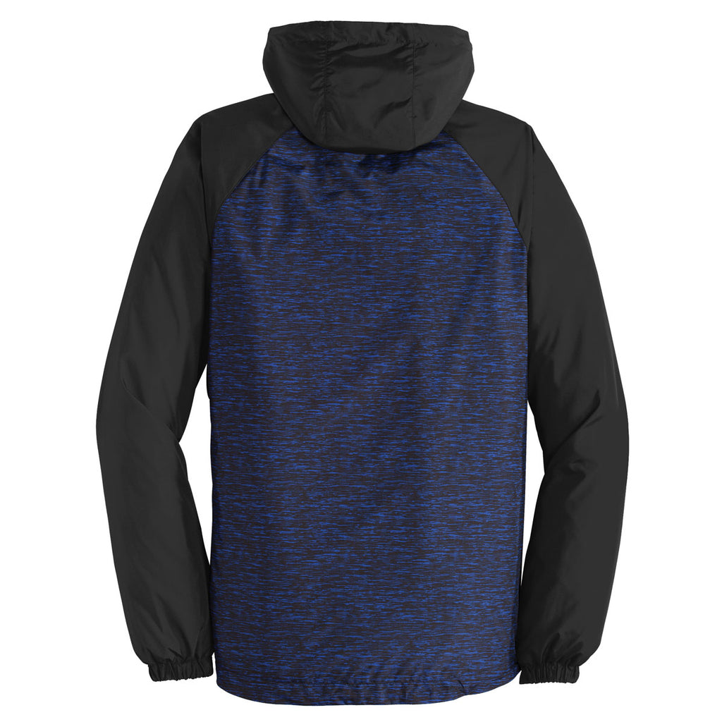 Sport-Tek Men's True Royal Heather/Black Colorblock Raglan Hooded Wind Jacket