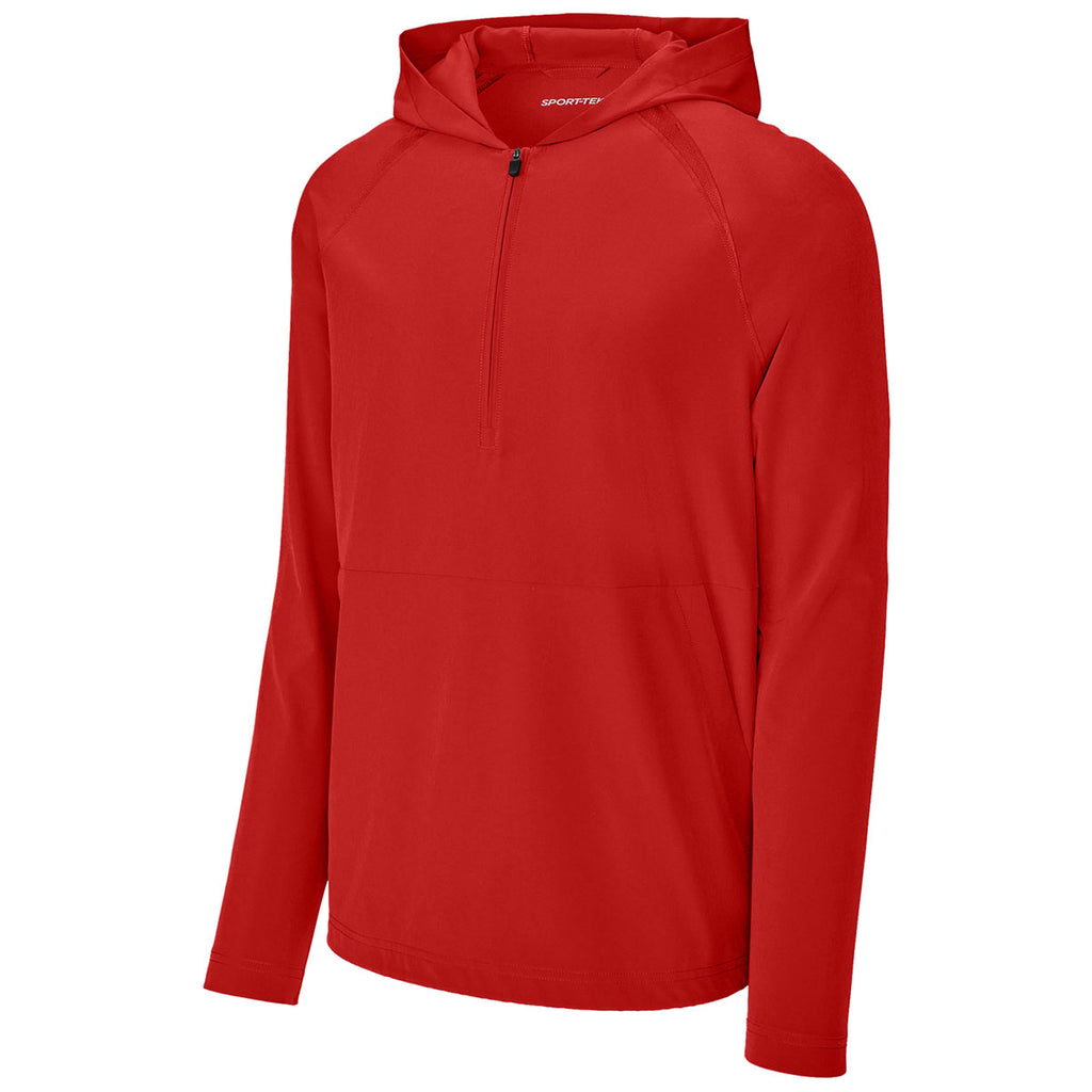 Enjoy a custom look with the Sport-Tek Men's Deep Red Repeat 1/2-Zip Long Sleeve Hooded Jacket. This pullover 1/2-Zip is snag resistant making it great as part of team gear or warm-up wear. An attached hood and adjustable hem create a custom fit whether hiking, biking or just enjoying the Great Outdoors.Highlights