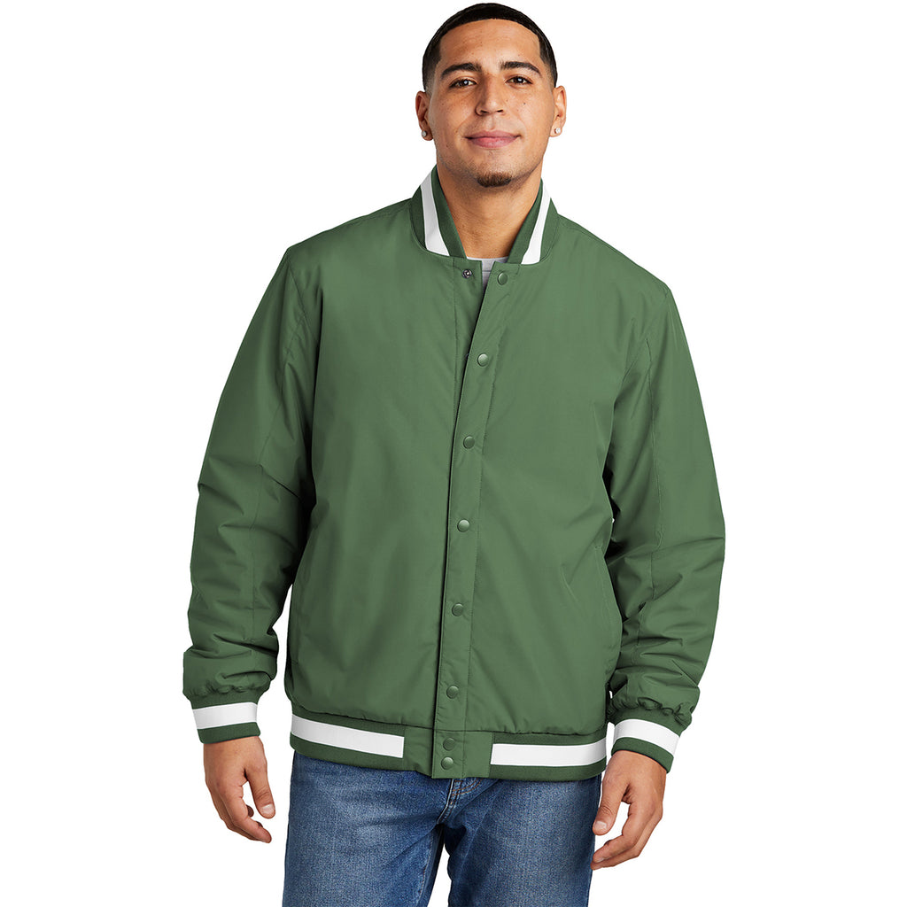 Sport-Tek Men's Forest Green Insulated Varsity Jacket with a custom logo is a great gift for yourself or others. The snap-button jacket screams coach or team member. The water-resistant coating and tag-free design make this great as part of team gear or for those supporters attending the games. Place an order today.Featured in our Fall 2024 Lookbook