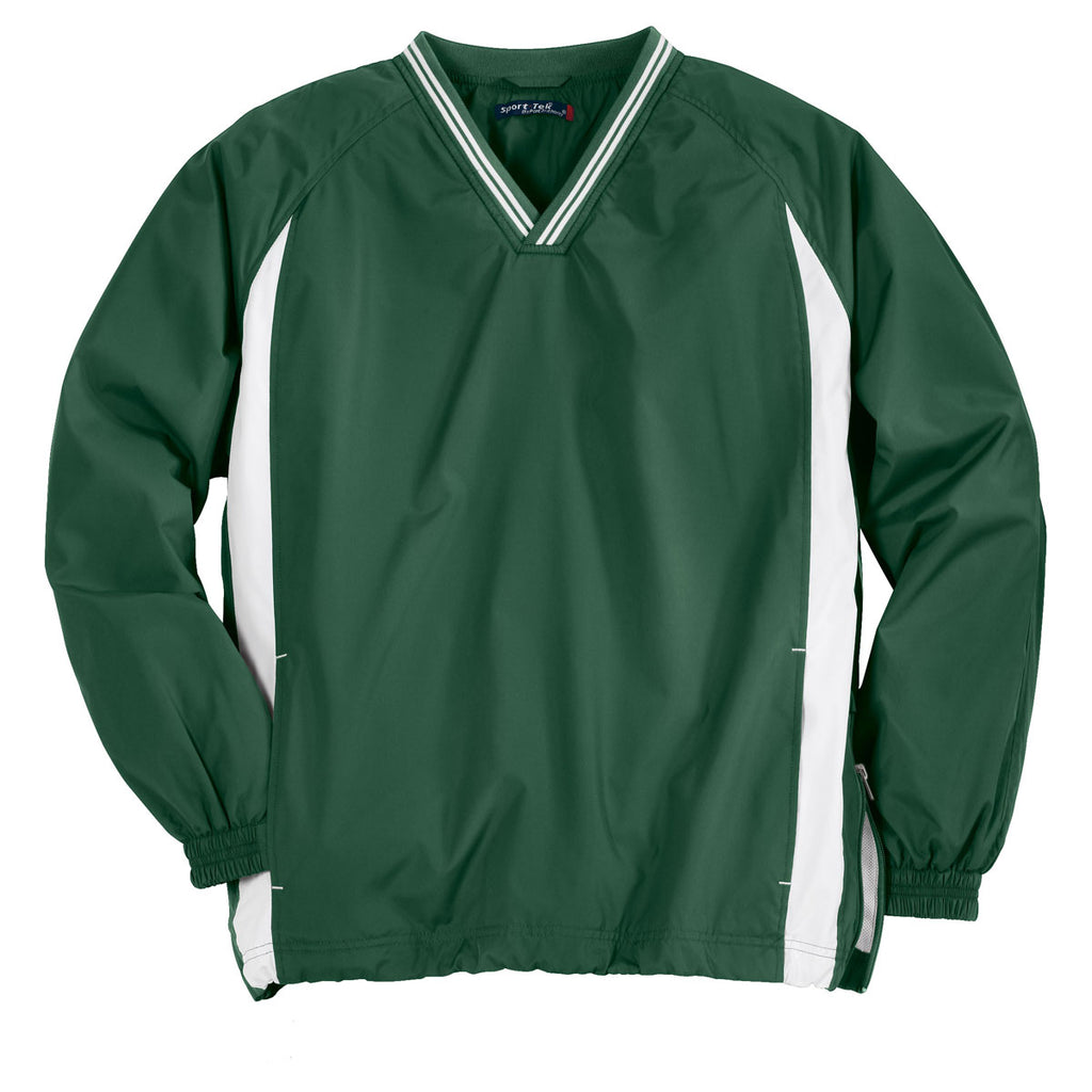 Sport-Tek Men's Forest Green/White Tipped V-Neck Raglan Wind Shirt