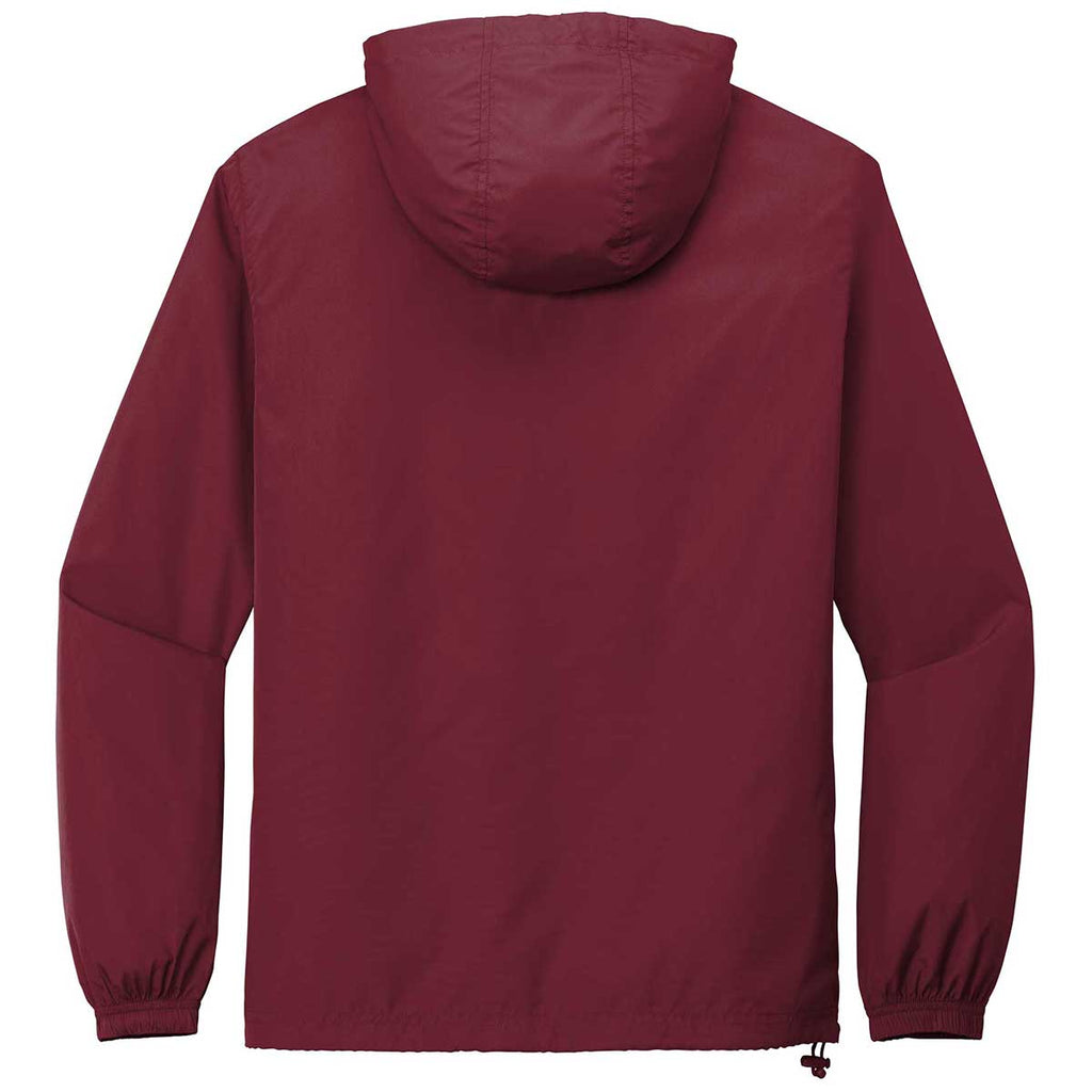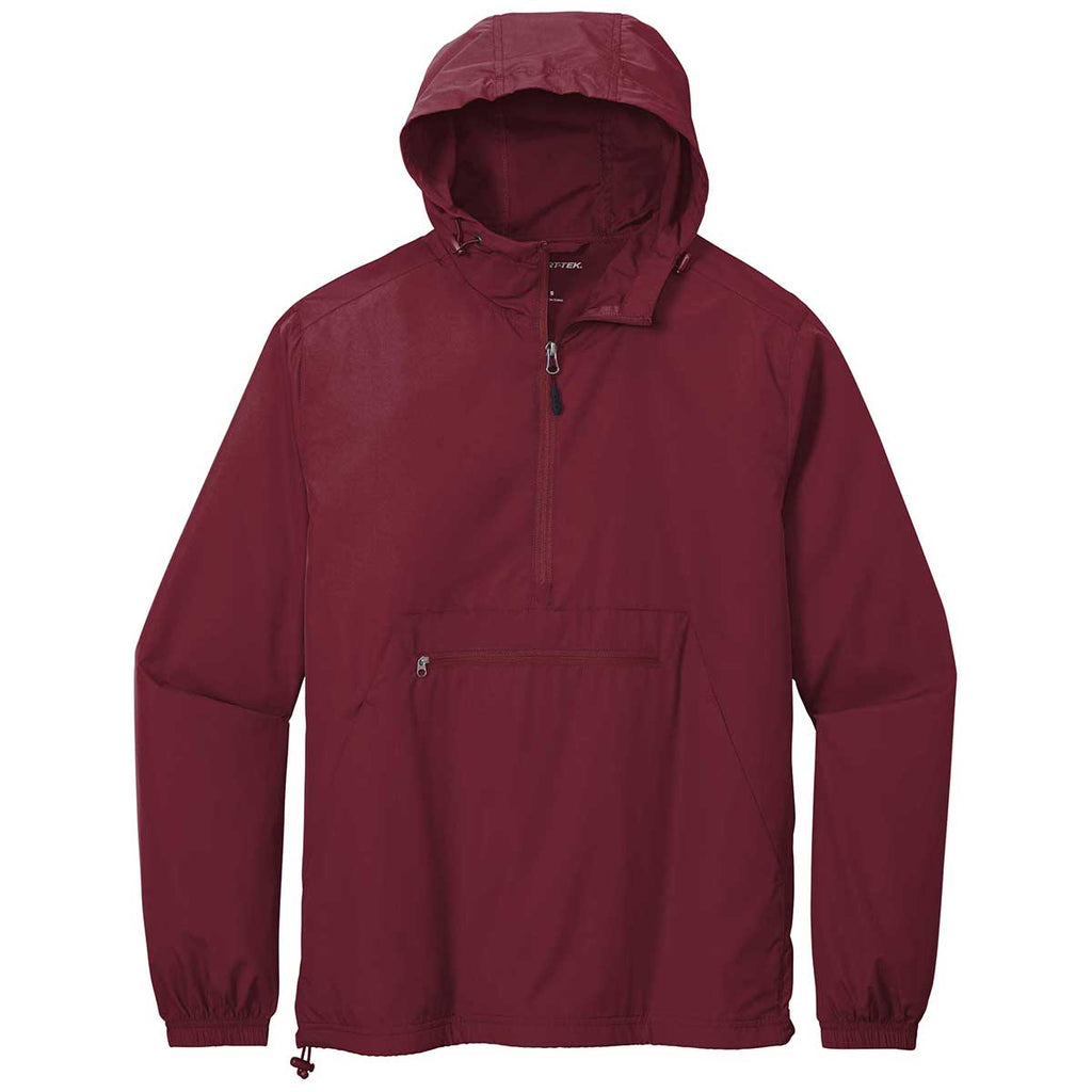 Stay protected in a custom embroidered Sport-Tek Men's Maroon Packable Anorak. This weather fighting essential is great when Mother Nature is unpredictable. Easily folds into its own front pocket so it can be stored in the car or a duffle as you head out to face the day. Made of 100% polyester on the shell, this jacket can carry your company logo with pride, making it an ideal employee gift. The three panel hood with drawstring and toggles mean you are prepared if the weather turns while participating in or watching a team event. A front pouch pocket and the pocket in which the jacket folds into keeps items safe and secure as you enjoy a commute to work or a day hanging with friends.Highlights
