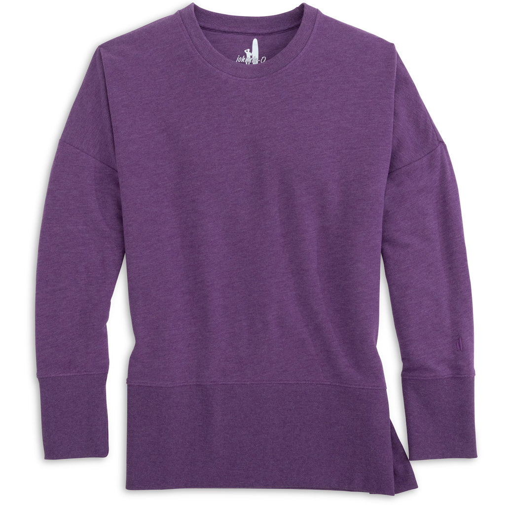 Choose a corporate logo for the Johnnie-O Women's Purple Brittany Crewneck to create a unique look for employees or customers. This comfortable cotton, modal, and polyester blend is great for wearing alone of layering to enjoy a fun and fashionable look that is ready for whatever is on your schedule. Place an order right away.